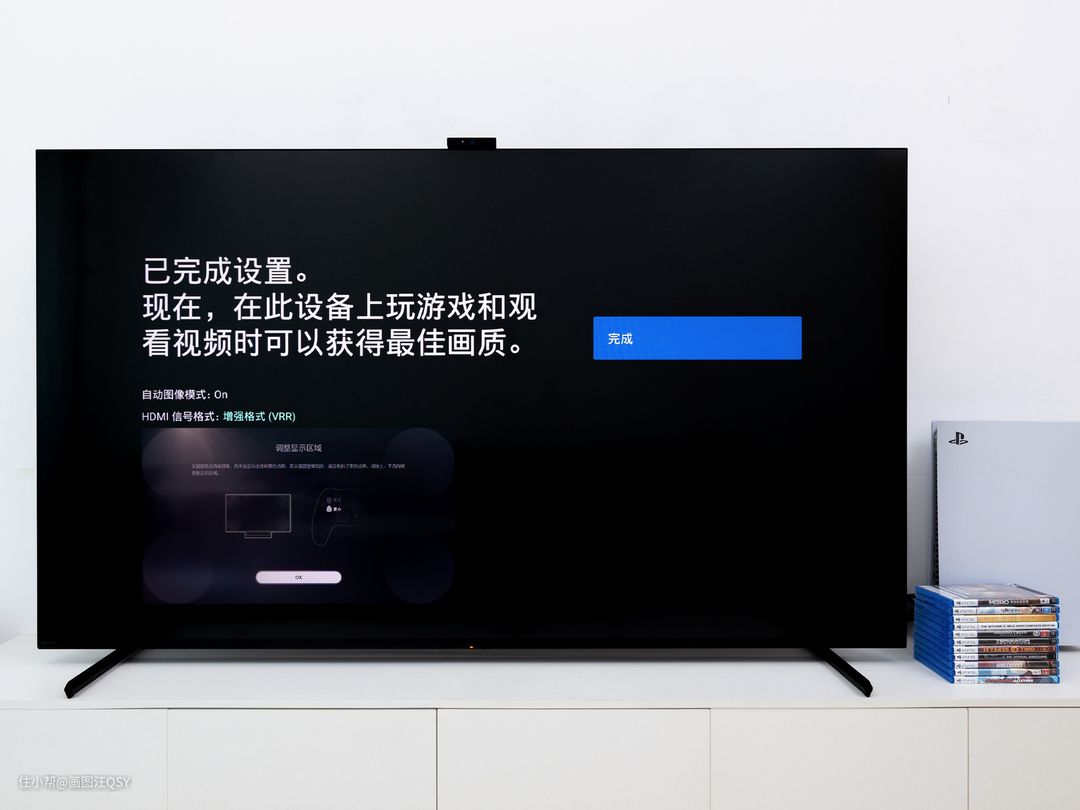 以手上的索尼65X91L电视为例,接入PS5后,电视会进入游戏游戏模式,自适应优化内容和图像,减少输入延迟和提升响应速度;而PS5也会识别电视型号,自动调整到合适的HDR设置。不需要自己操心,很省事。
