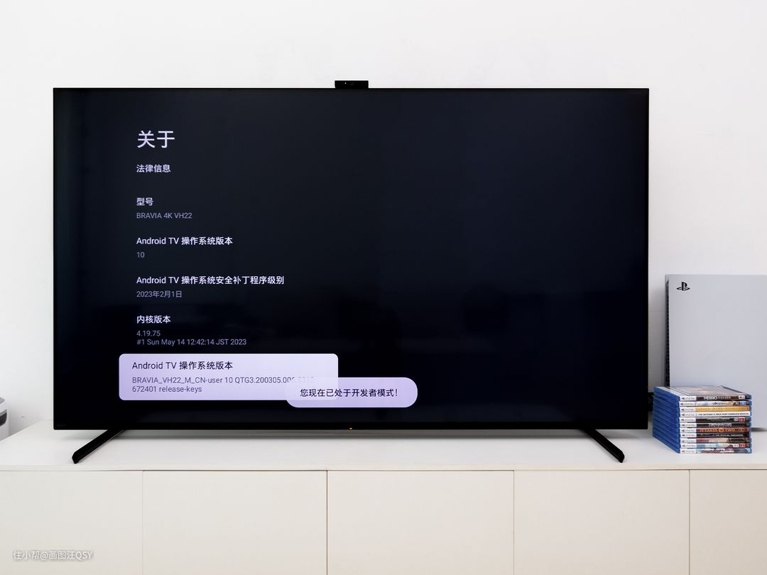 由于索尼XR-65X91L基于安卓,很多共同的地方。例如在设置的关于里面,连续按系统版本就能进入开发者模式。