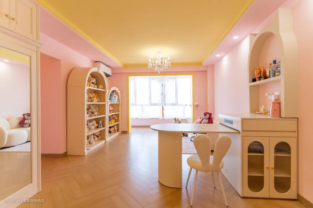 整体运用了独特的粉色和黄色进行撞色设计,让整个空间有一种梦幻、活泼的感觉。