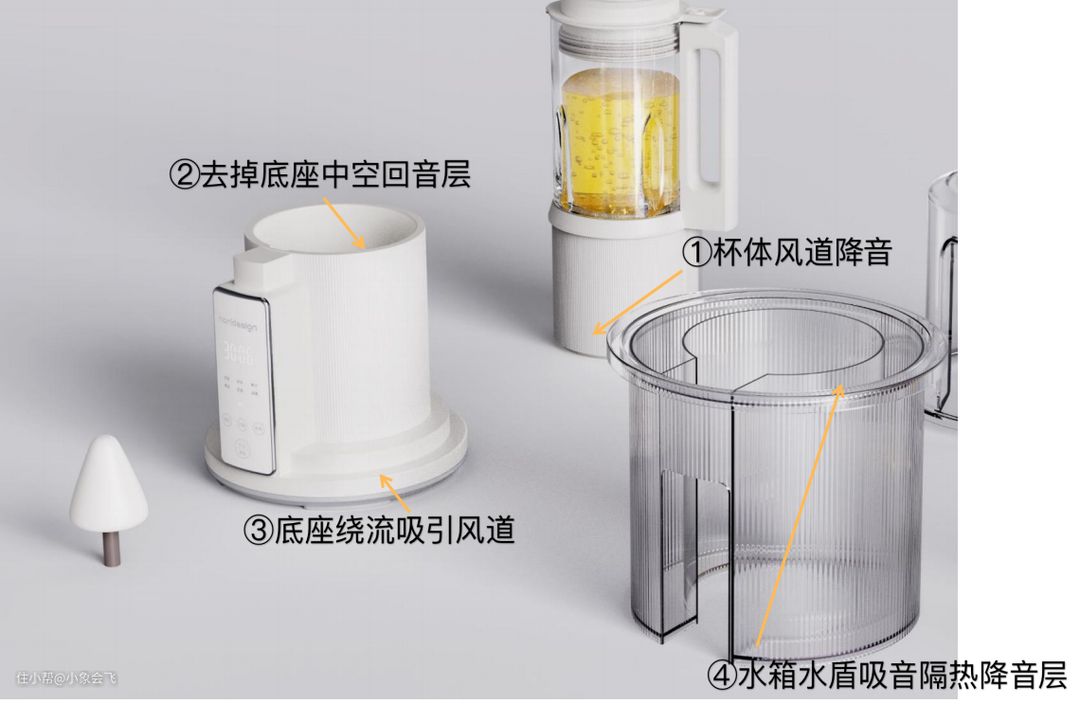 而蒸汽破壁机通过行业首创,研发出全包裹吸音水盾,底座全新升级,以水为介质阻隔高频声波,再加上加厚密封的隔音罩,能够有效隔绝运行噪音。