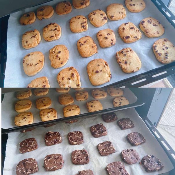 长帝大白鲸F40烤箱在3层同烤的同时还能很好的把握住品质,因为它有双控温系统,温度精准,另外,它采用独家Annular Air热均衡技术,把风炉与平炉相结合,在风扇的作用下,即使是三层同烤,也能做到内部温度均匀,使每层考出来的食物上色都很均匀。这是我第一次使用长帝大白鲸F40烤制的蔓越莓饼干,口感酥脆,上色效果也不错。