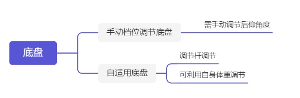 手动档位调节底盘:是指需要自己手动调节后仰角度,有固定的档位设定。