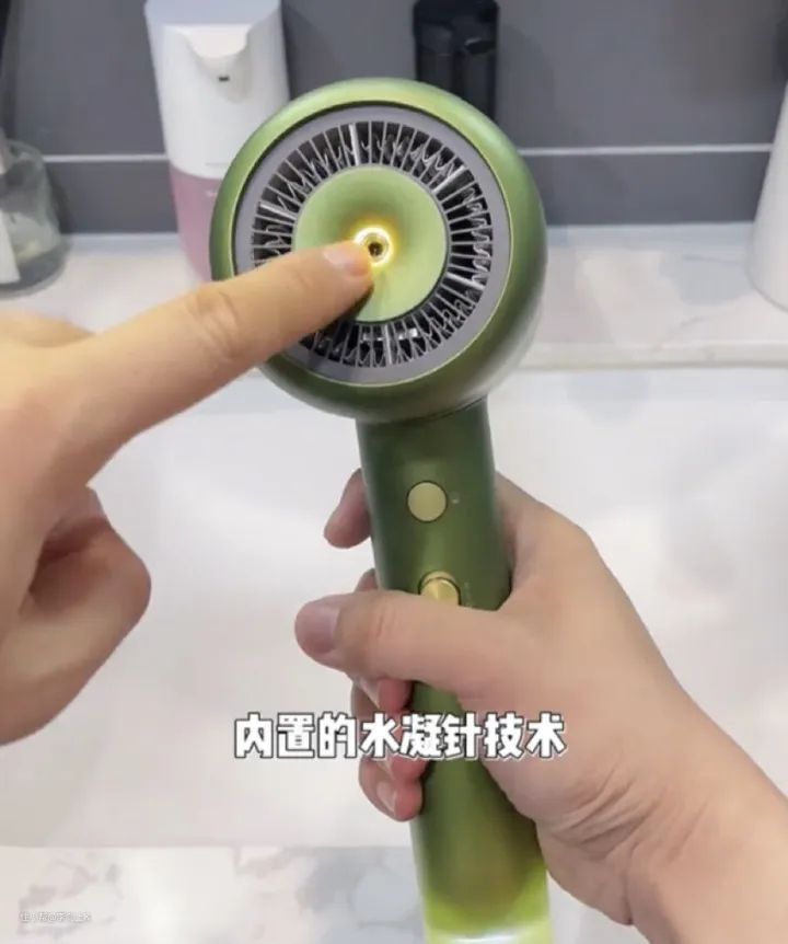 负离子护发:是指通过内置负离子发生器, 释放大量电子,电子与空气中的氧分子结合而形成负离子,负离子能帮助中和头发静电,抚平头发毛躁,闭合毛鳞片有效减少头发分叉