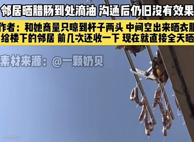楼上晒腊肠滴油,楼下沟通无效,愤愤不平的网友脑替支招