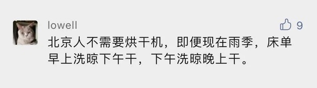 而且,越来越多年轻人也发现了烘干、干衣设备的好处,尤其南方,无论外头的空气多潮湿,根本不用担心十条内裤一条干的都没有的窘况。