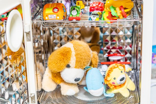 ▲▲高达25L的容量使得蓝宝消毒柜的消毒不只是局限于奶瓶,还能适用于孩子后面的辅食期(碗勺及衣物)和成长期(玩偶、布书及硅胶材质玩具等)