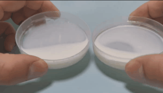▲▲有类似经历的应该知道牛奶或者豆浆放久了会变成“酸奶”。从上面动图也可以看到,右侧桌面存放的对照组已经开始变得浓稠,只是因为时间和温度关系还没有完全变成“酸奶”。而消毒柜内的实验组状态就比较理想,跟新鲜牛奶出入不大。