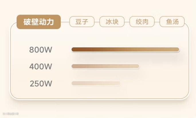 因此,在选择破壁机时,需要根据自己制作的食品来确定合适的功率。建议选择加热和搅拌功率都在800W以上的,低于500W的破壁机完全不用考虑。
