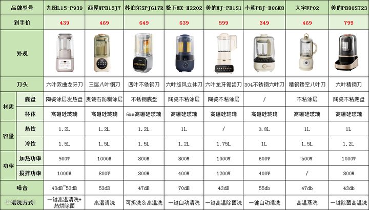 500-1000元:属于高性价比款,功能齐全,转速和降噪等方面都有很大的提升。小希这次也是主推这个价位区间的破壁机。