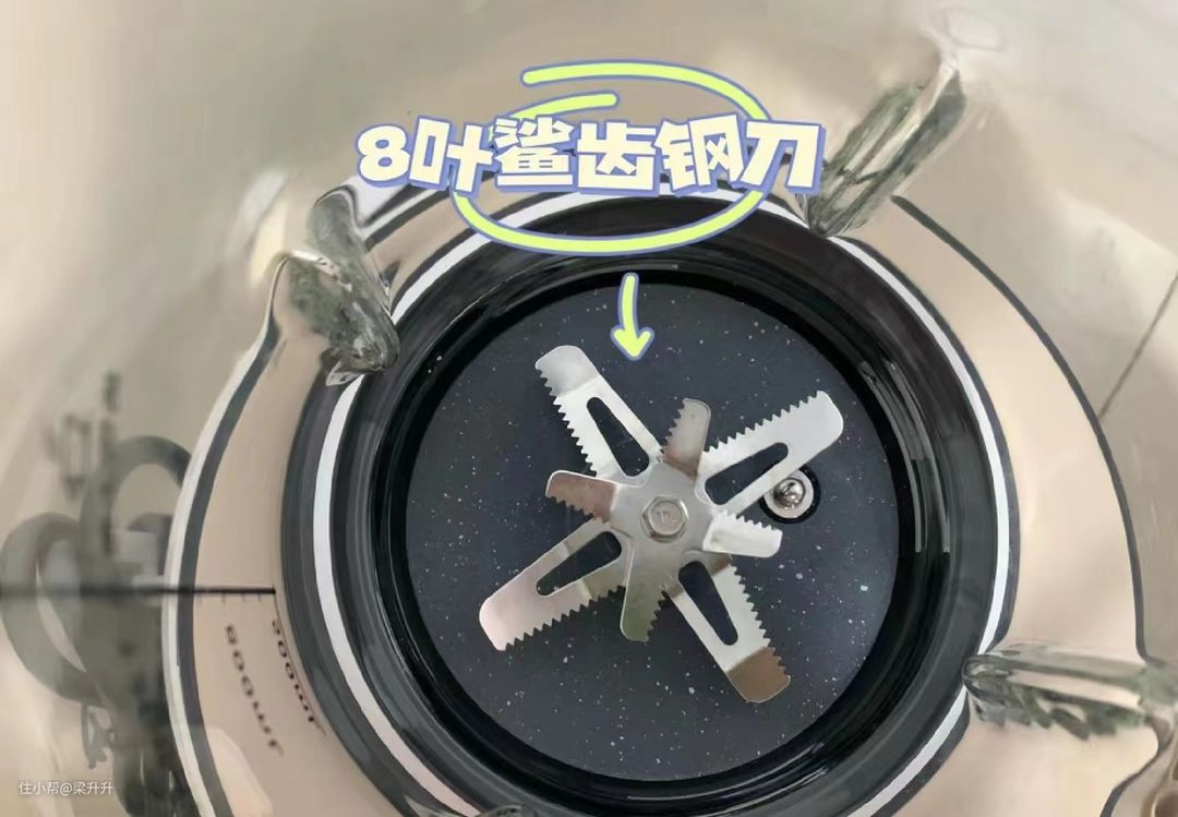 8叶鲨齿钢刀加上高转速铜芯电机,做出来的食物,非常细腻,一点渣渣都没有,完全不用过滤。
