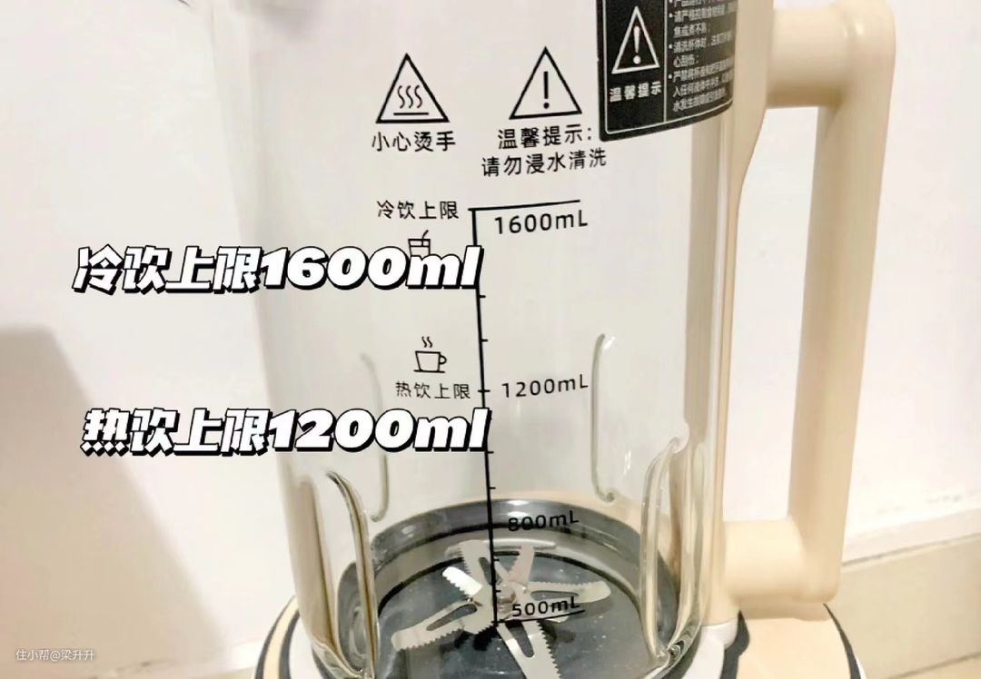 这款破壁机有1.6L,可以做热饮,也可以做冷饮,热饮 1200ml ≈ 6杯,冷饮 1600ml ≈ 8杯,基本可以满足一家四口人的使用。