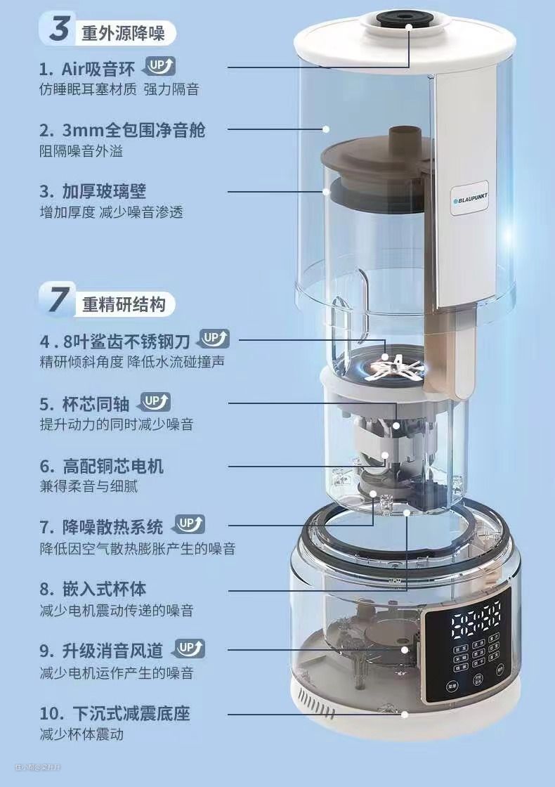 从内到外全方位抑制噪音,一台真正做到不扰清梦不扰眠,也不用担心邻居投诉的破壁机。