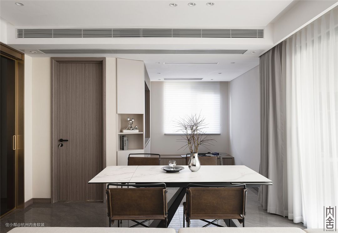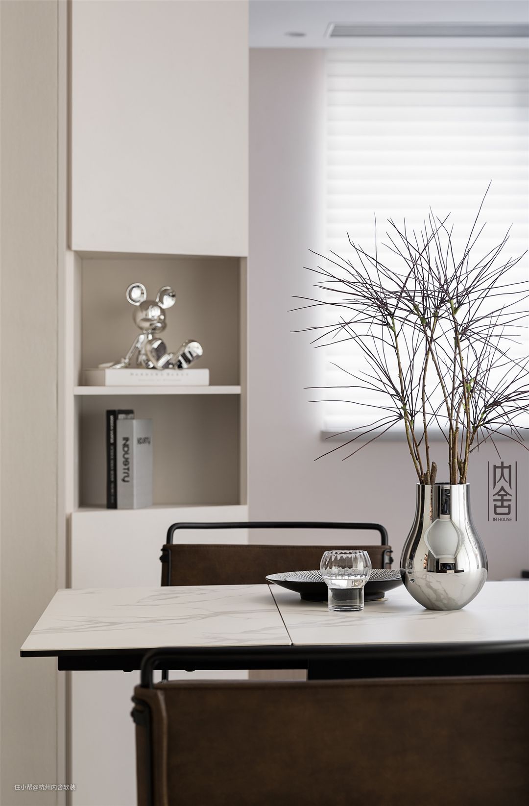 餐厅与原书房的墙面打通,扩宽了两个区域的空间,让整体有更多的可变性。设一组通顶餐边柜,满足收纳和日常的使用需求。