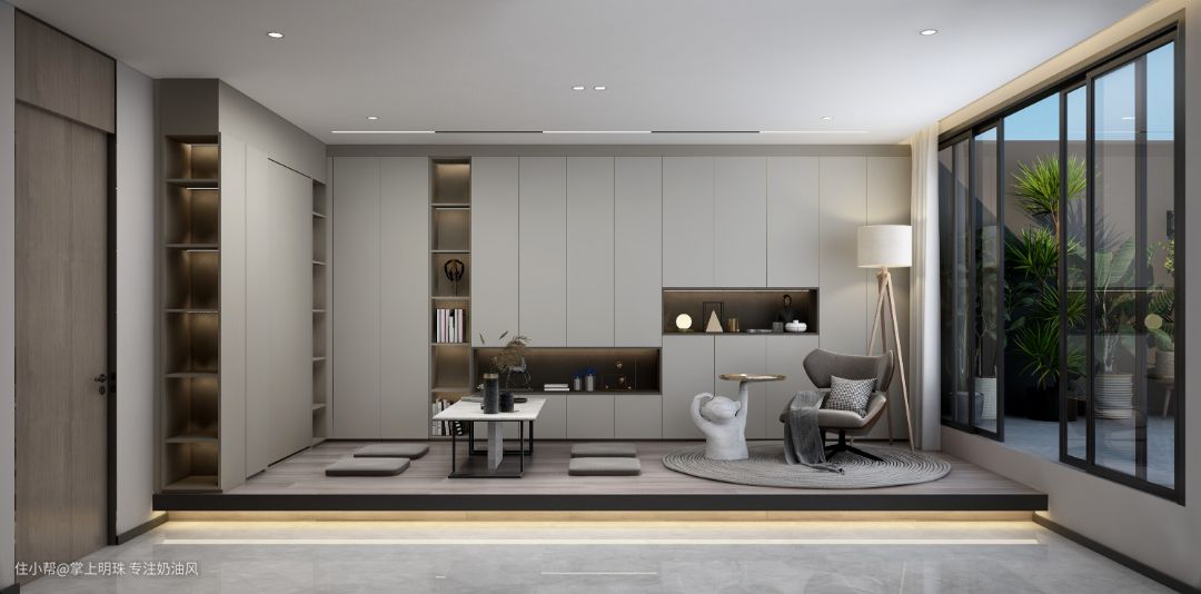 榻榻米+收纳柜+书桌的形式,是多功能室最常用的一种搭配形式。