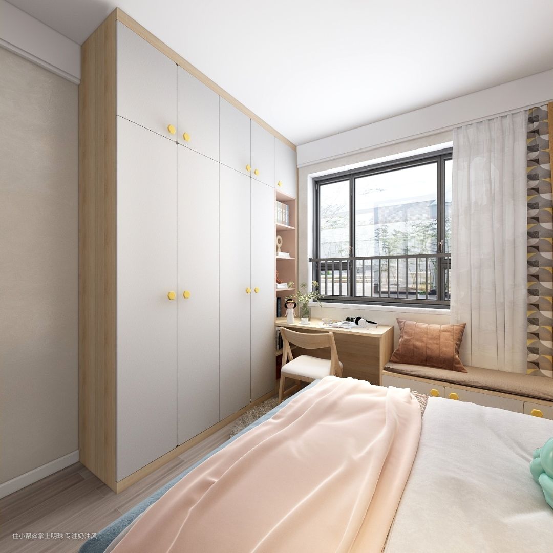 靠窗位置收纳柜、书桌、榻榻米的设计,是让空间功能变得多元化的功臣,或作、或躺、或学习、或休息,都可以满足。