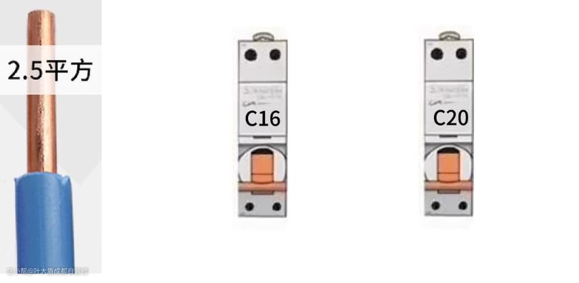 注意:空气开关的大小和线材的平方(横截面粗细)相互匹配,推荐2.5平方的线搭配16A或者20A的空气开关。