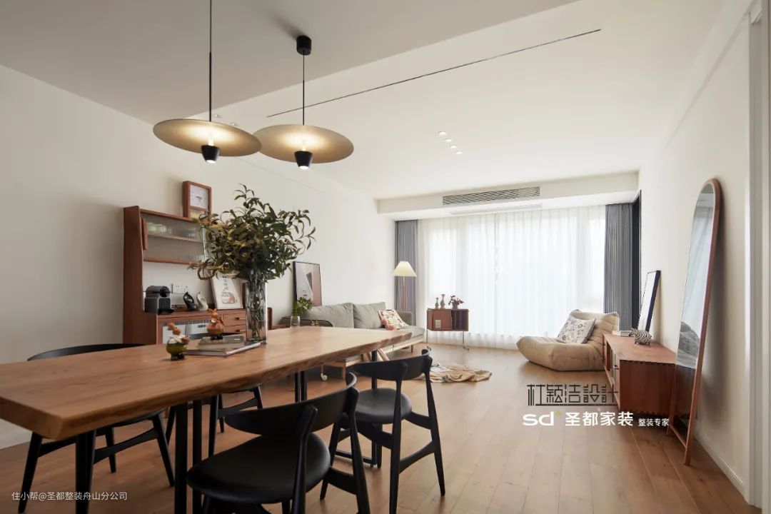 开放式布局减少拥挤感和压抑感,有一种“放大”空间的作用,让居者住得更舒心。不仅如此,相较于封闭型空间,开放式布局让空间互动性更佳,有利于家人间的情感交流。