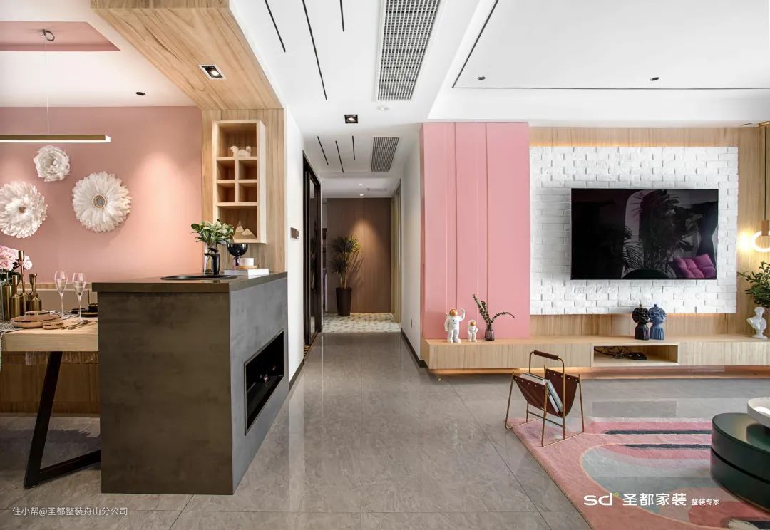 在空间过渡处安排一个小小的吧台,既能划分空间,又能增加与家人互动的机会,还能为空间增添一丝浪漫气息!