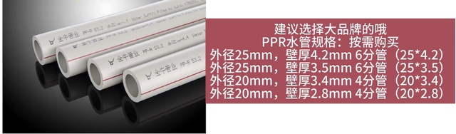 管材质方面目前常见的就是PPR水管,和铝塑PPR水管(铝塑管),建议大家选择PPR材质的水管就行了,目前PPR水管的质量都不错,并且热熔连接的方式也比较可靠,品牌水管打压测试通过之后还会提供50年的质保。