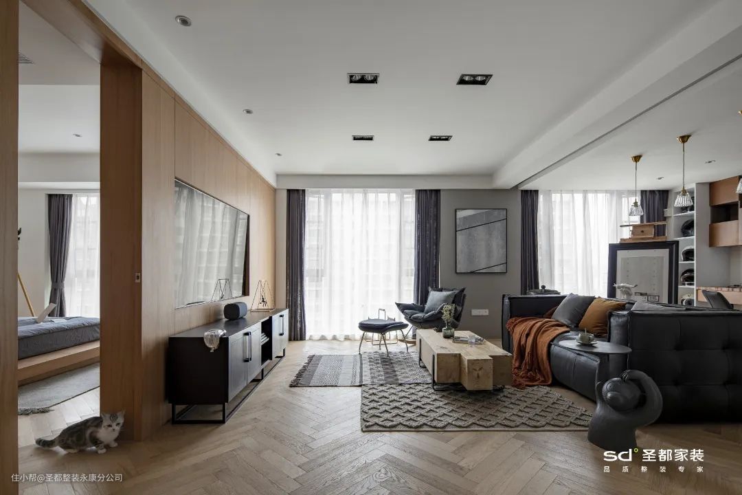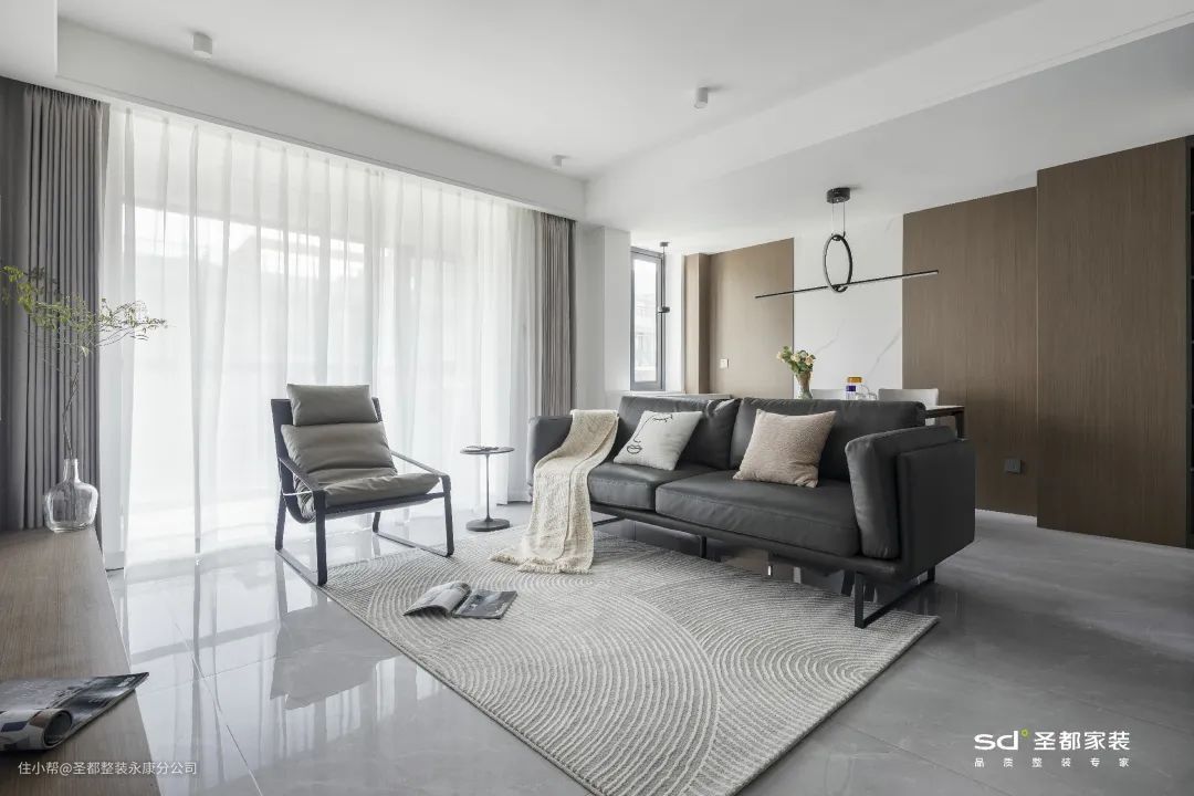 放弃高大、笨重、占地面积大的家具,改用低矮轻便的小体量家具,不仅显层高,还会让空间更具轻盈感。