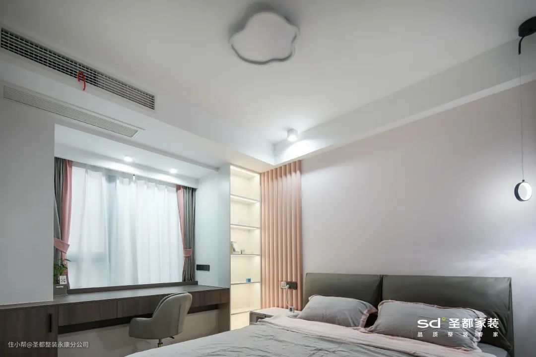 无主灯设计见光不见灯,除了实现照明功能与氛围感设计以外,还不占层高,可以说是非常完美了。