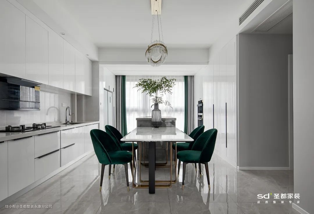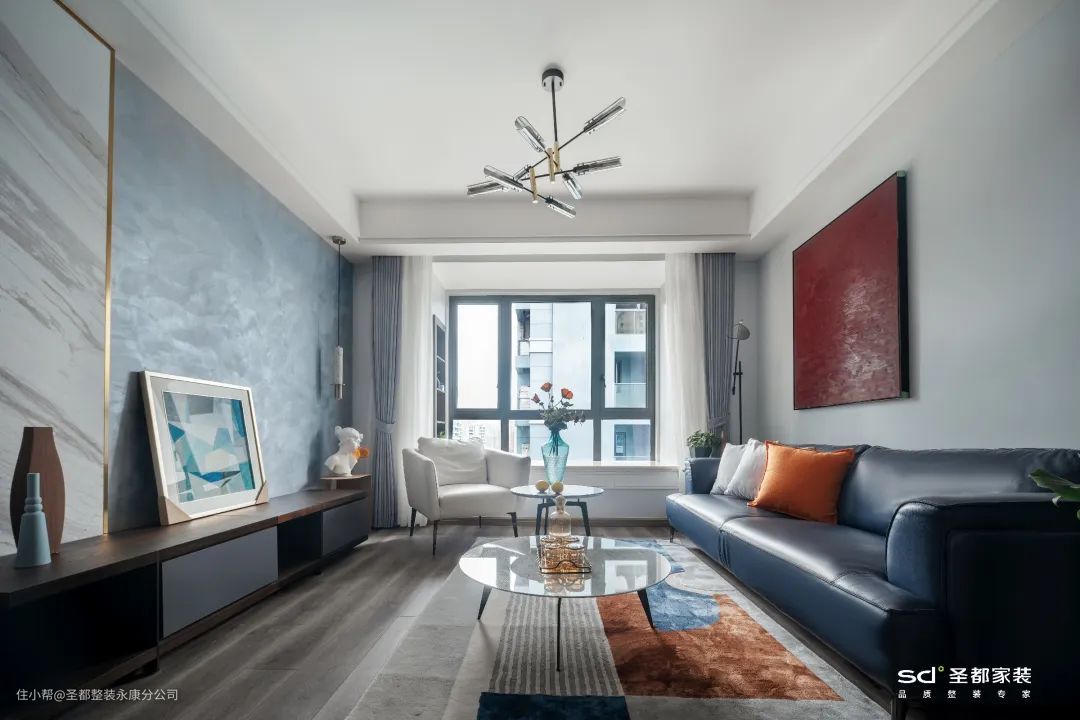 另外,人们的视觉重心会随深色系转移,为了更显高,空间配色上建议上浅下深:即墙面、顶面选浅色,地面选深色。