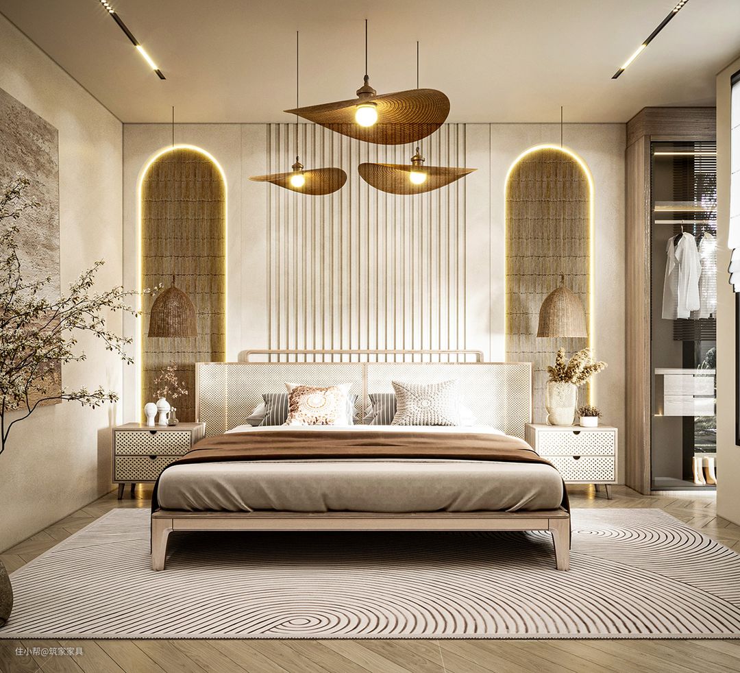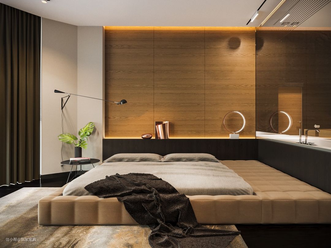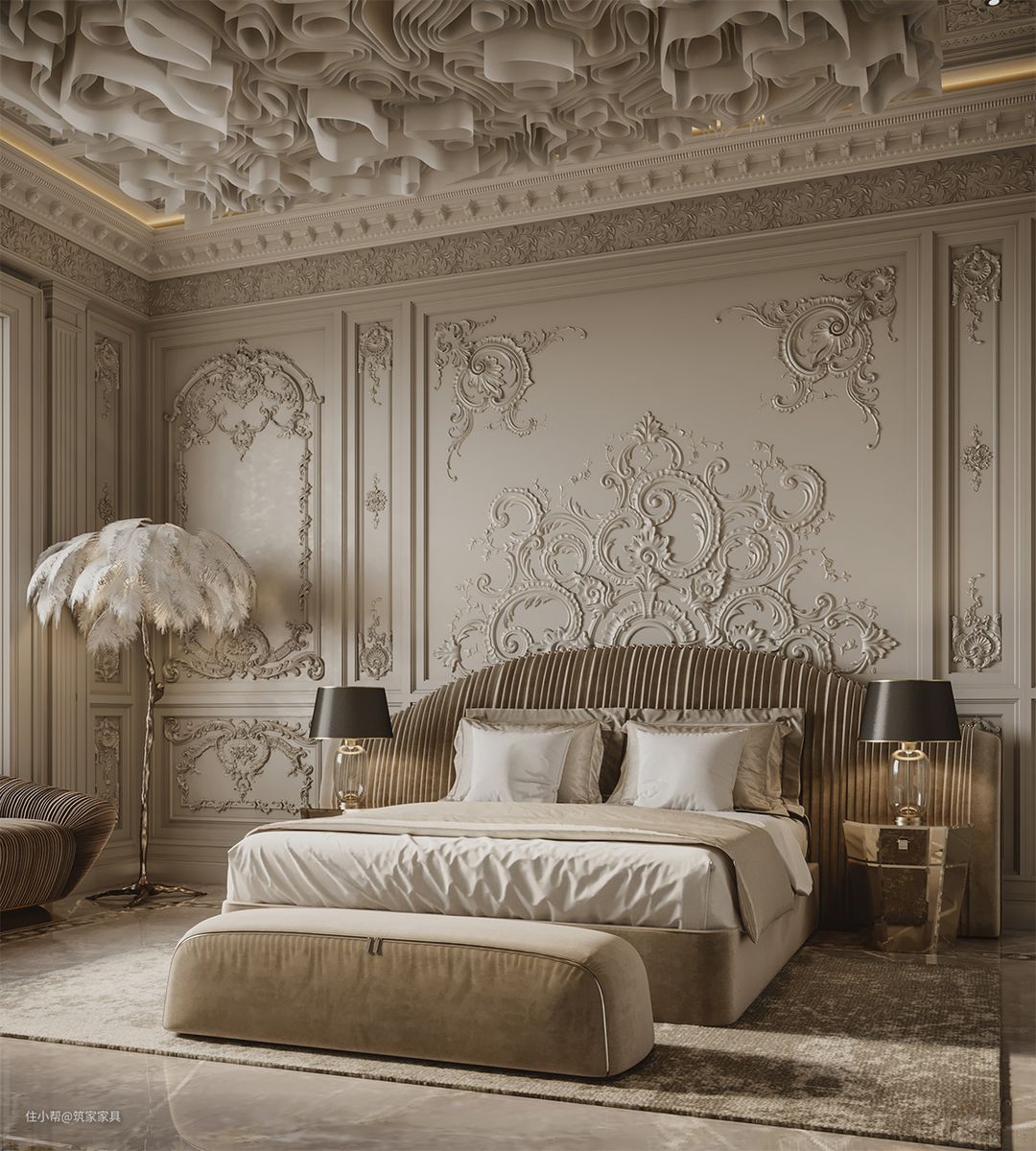 点亮优雅的细节,增强其存在感。这张床的两侧有两个发光的拱门,优雅而迷人。