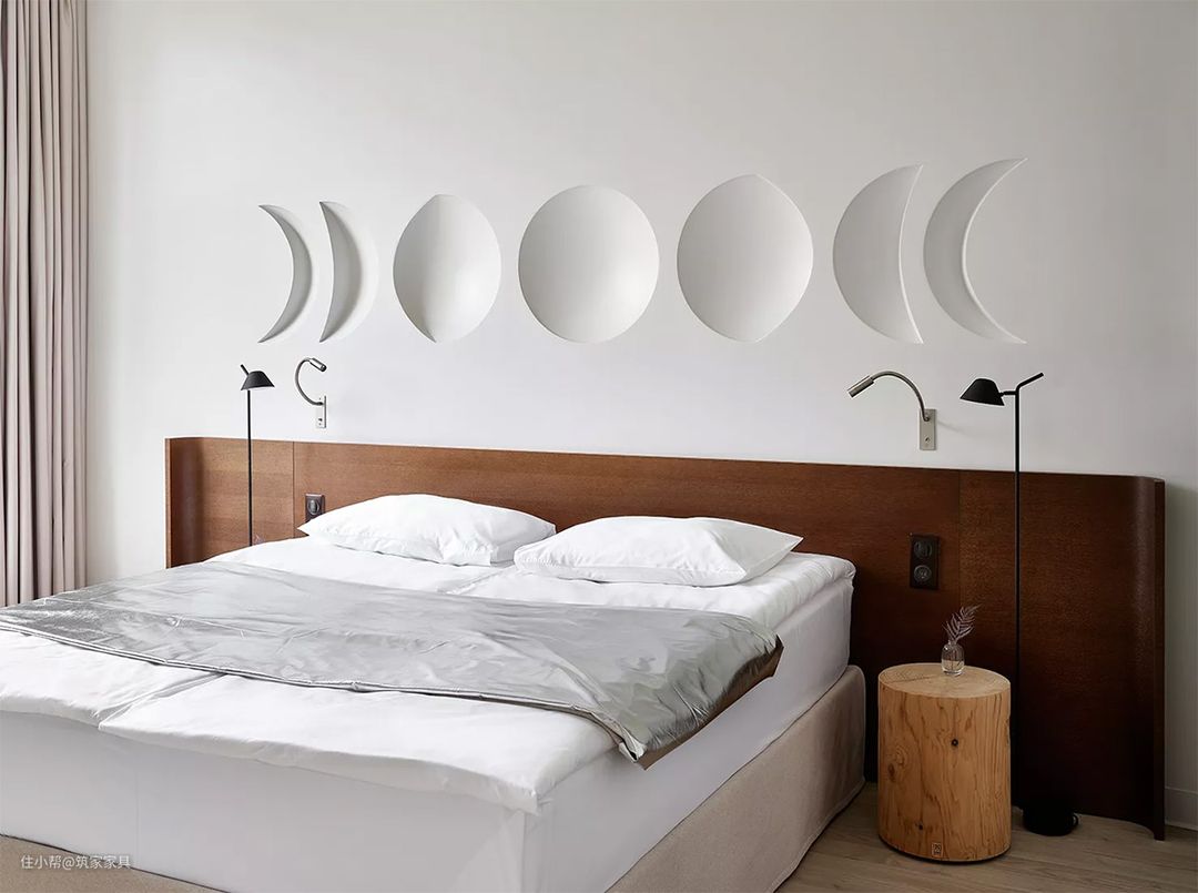 月相为卧室打造了一个合适的墙壁装饰主题。您可以悬挂彩绘画布来描绘您的天体主题,但这种灰泥浮雕细节非同寻常。