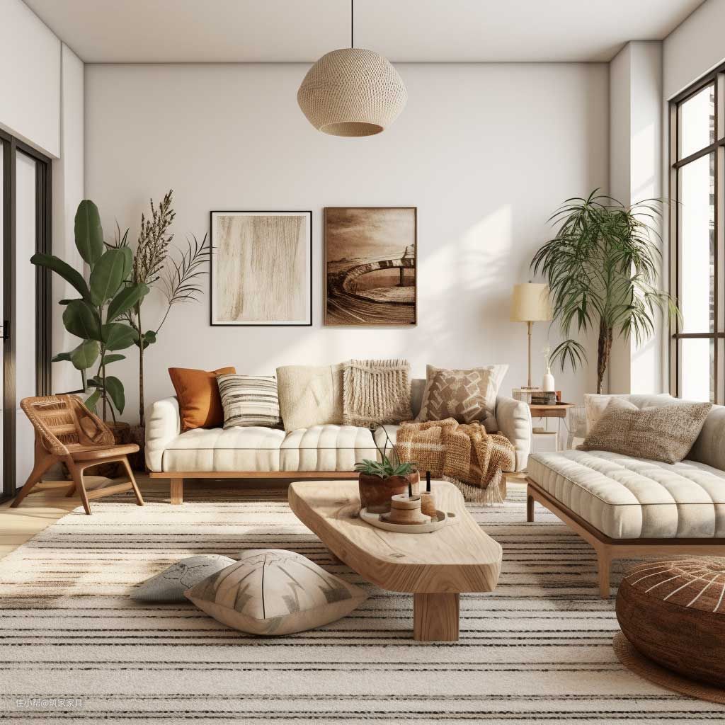 朴实色调的极简波西米亚客厅