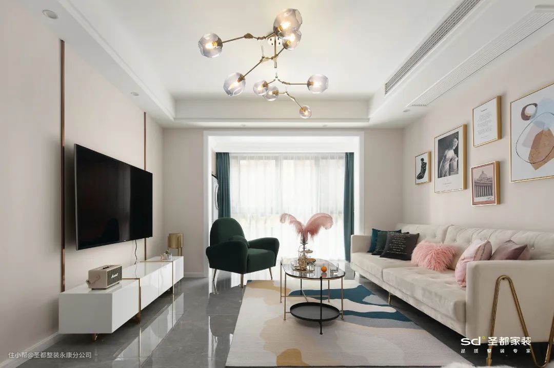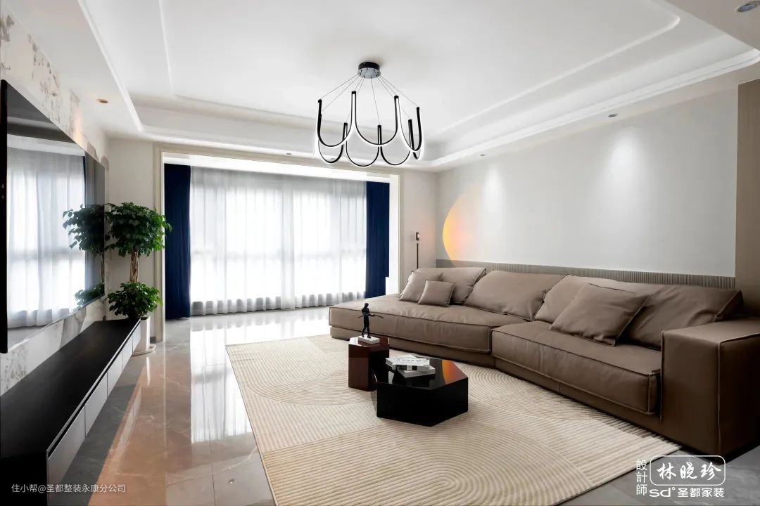 按照“墙浅地中家具深,墙深地中家具浅。”的配色标准来设计空间色彩,整体视觉感会比较和谐。