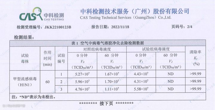 金黄色葡萄球菌:99.82% 大肠杆菌:99.84% H1N1去除率:99.99%