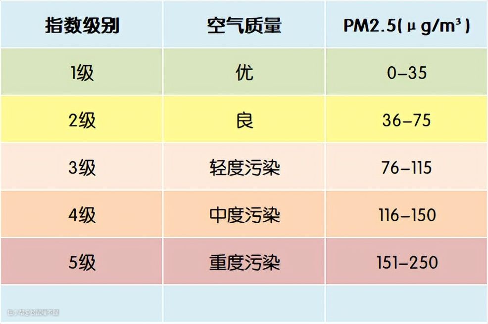 比如,雾霾天一般PM2.5浓度在150μg/m³以上,二手烟PM2.5一般在300μg/m³附近,PM2.5浓度超过150μg/m³时,都属于重度污染。