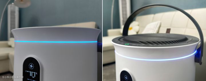 顶部环绕一周的灯圈,可以实时反馈出湿度的变化,让它充当氛围灯也不错,很带感。