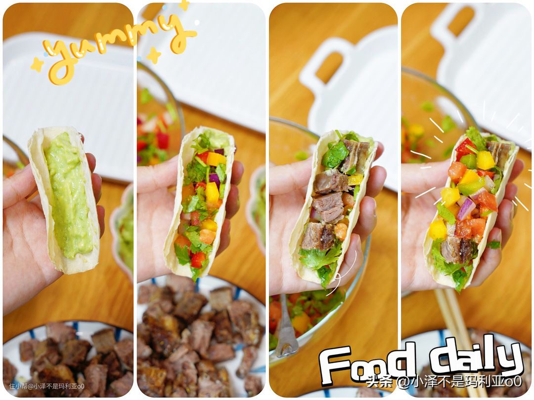 清新爽口的莎莎酱,鲜嫩多汁的牛肉,再搭配上香香脆脆的全麦饼皮,好吃没负担!我愿称之为减脂饮食界的天花板!