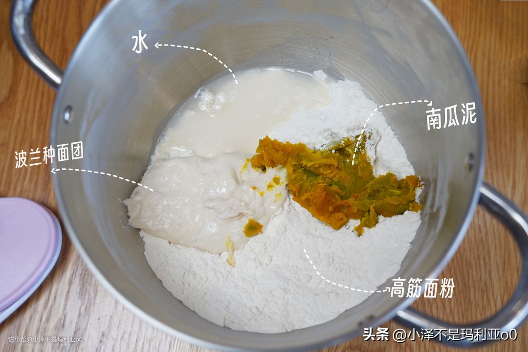 食材真的很简单,只需要高筋面粉、耐高糖酵母、南瓜泥、水、盐。
