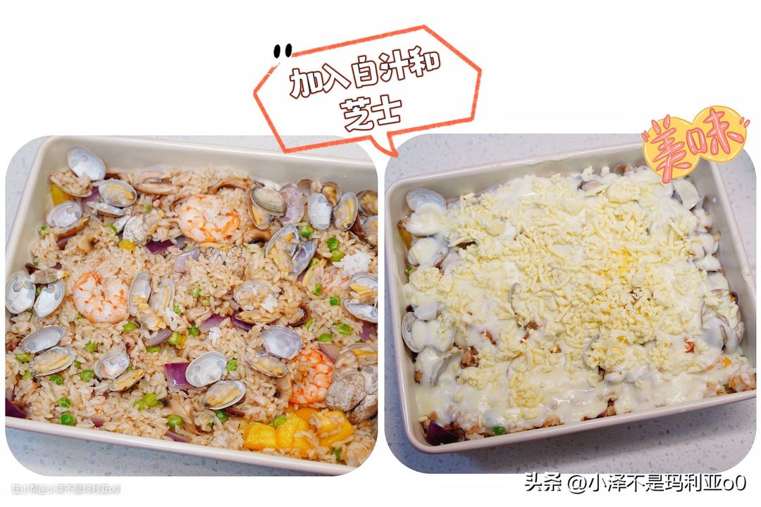 2、奶香浓郁——西班牙白汁海鲜焗饭