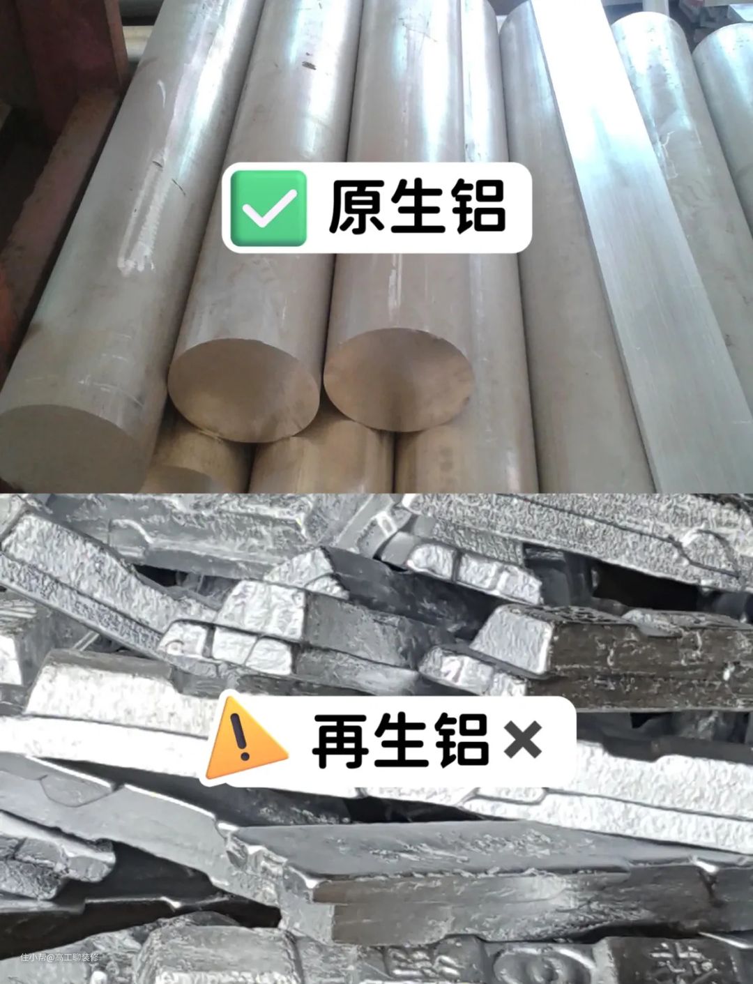 市面上的原生铝和再生铝肉眼是很难分辨出来的,到时候直接让商家出示检测报告,要6063-T5 和6060-T6的
