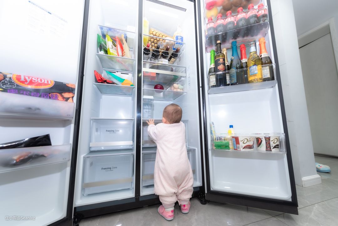 635L的容量在家用冰箱中是属于空间较大的款式,装了部分囤货之后还显得非常空,1岁的宝宝都能住进去。