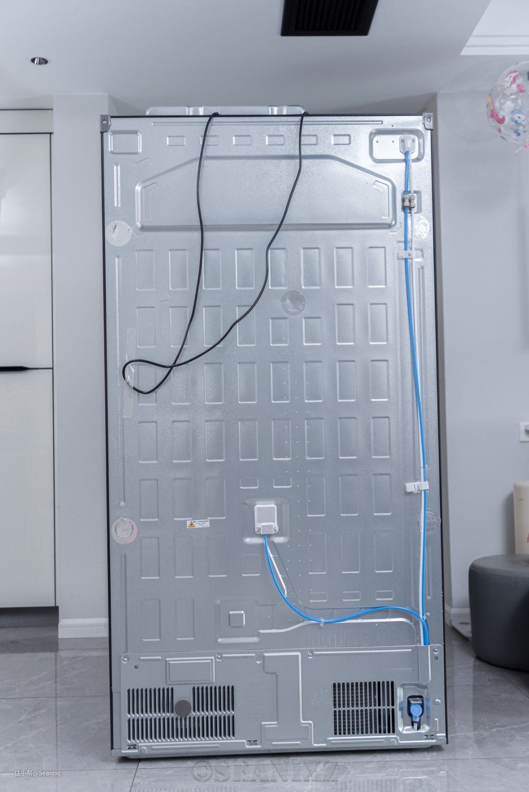 我看到背部这个管线其实是裸露在冰箱外面的,而且使用的就是常规的PE管,实在不小心误装了饮料也是可以通过拆下清洗管线或者换新管线救回来的,PE管也很便宜,没太大问题。