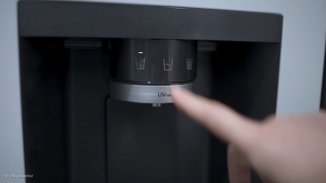 不同的功能只需要按键选择即可,出水口带有UVNano紫外杀菌系统,灭菌率99.99%,可以保障内部冰块和冰水的卫生健康。