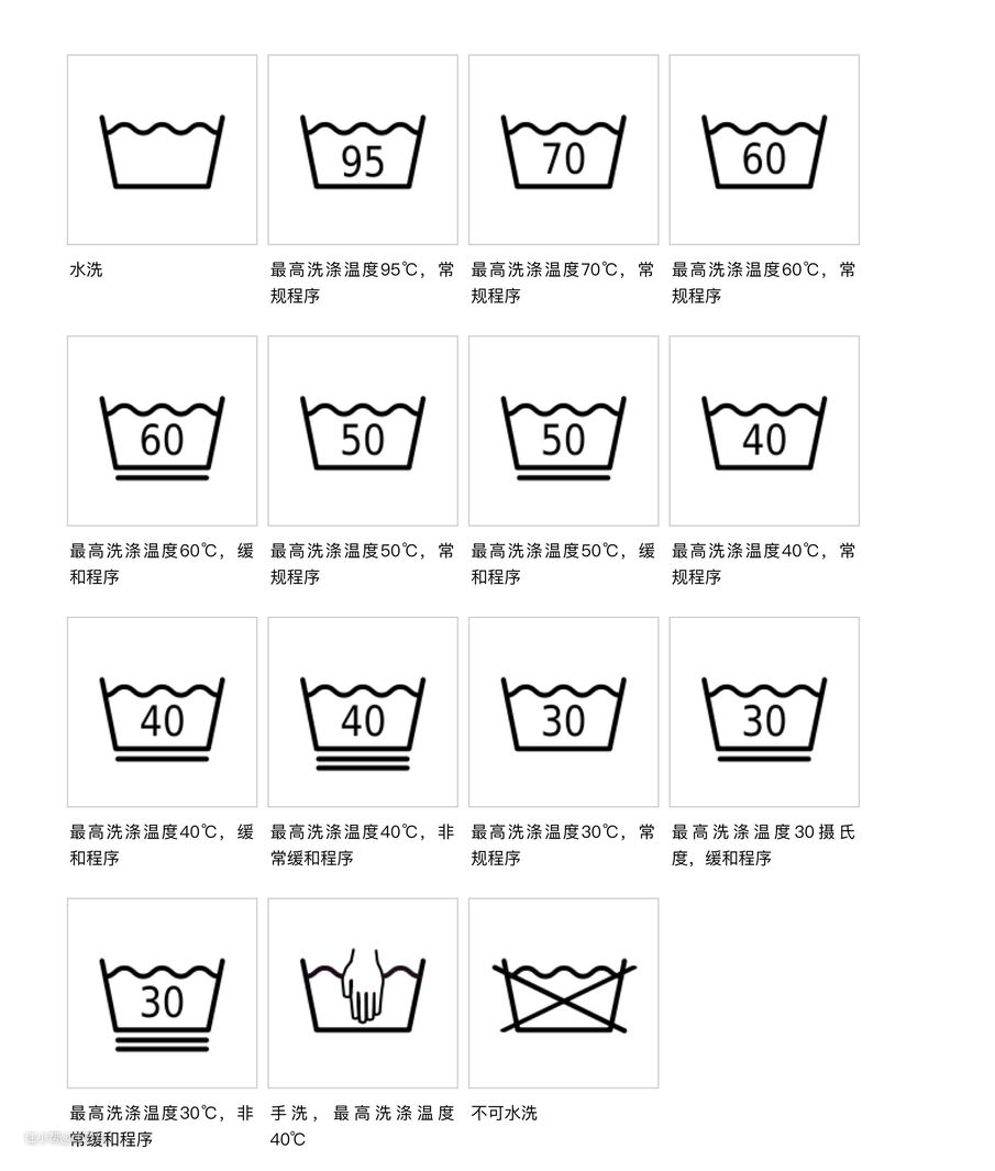 最不会出错的方法当然是查看水洗标,水洗标的常用符号释义如下: