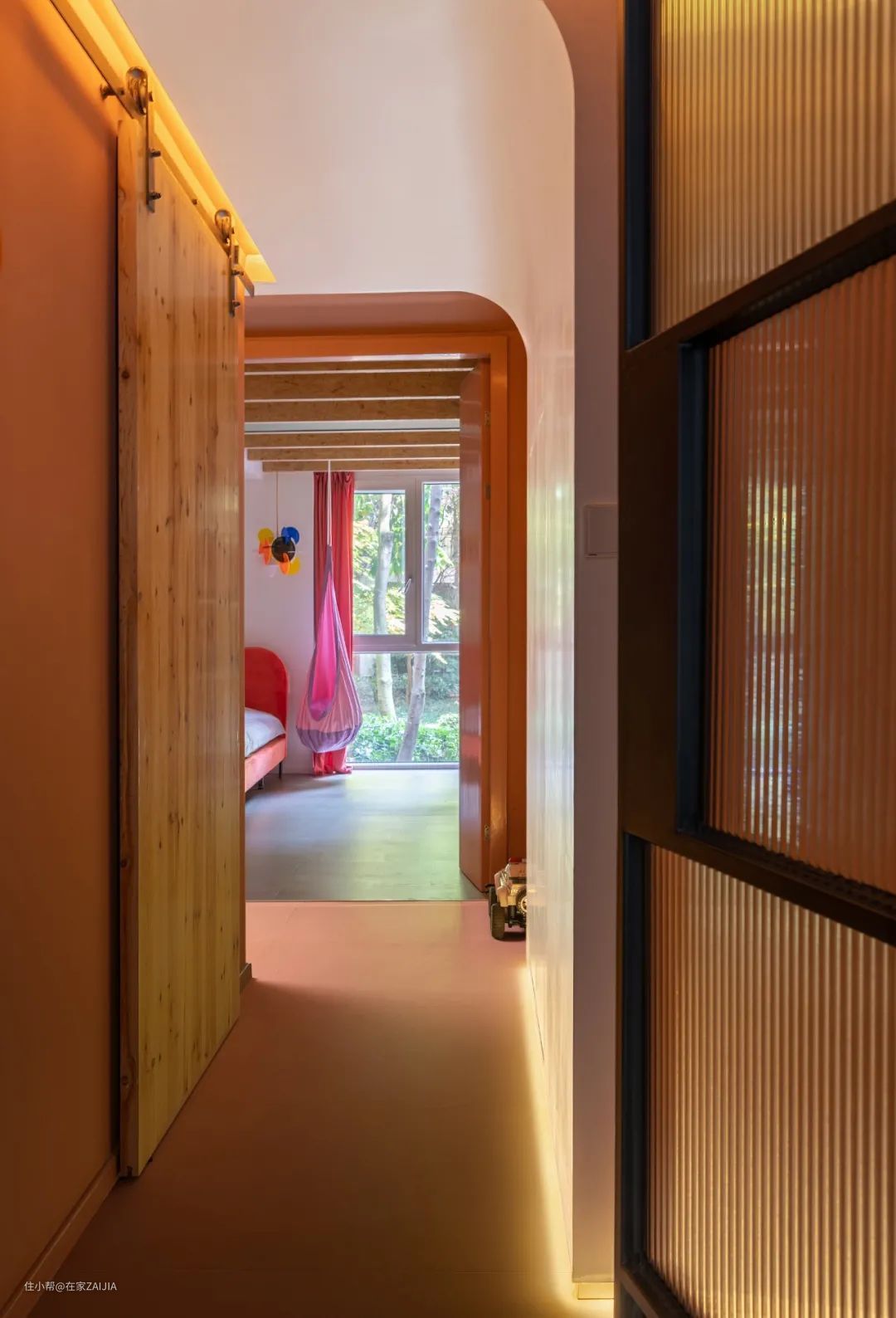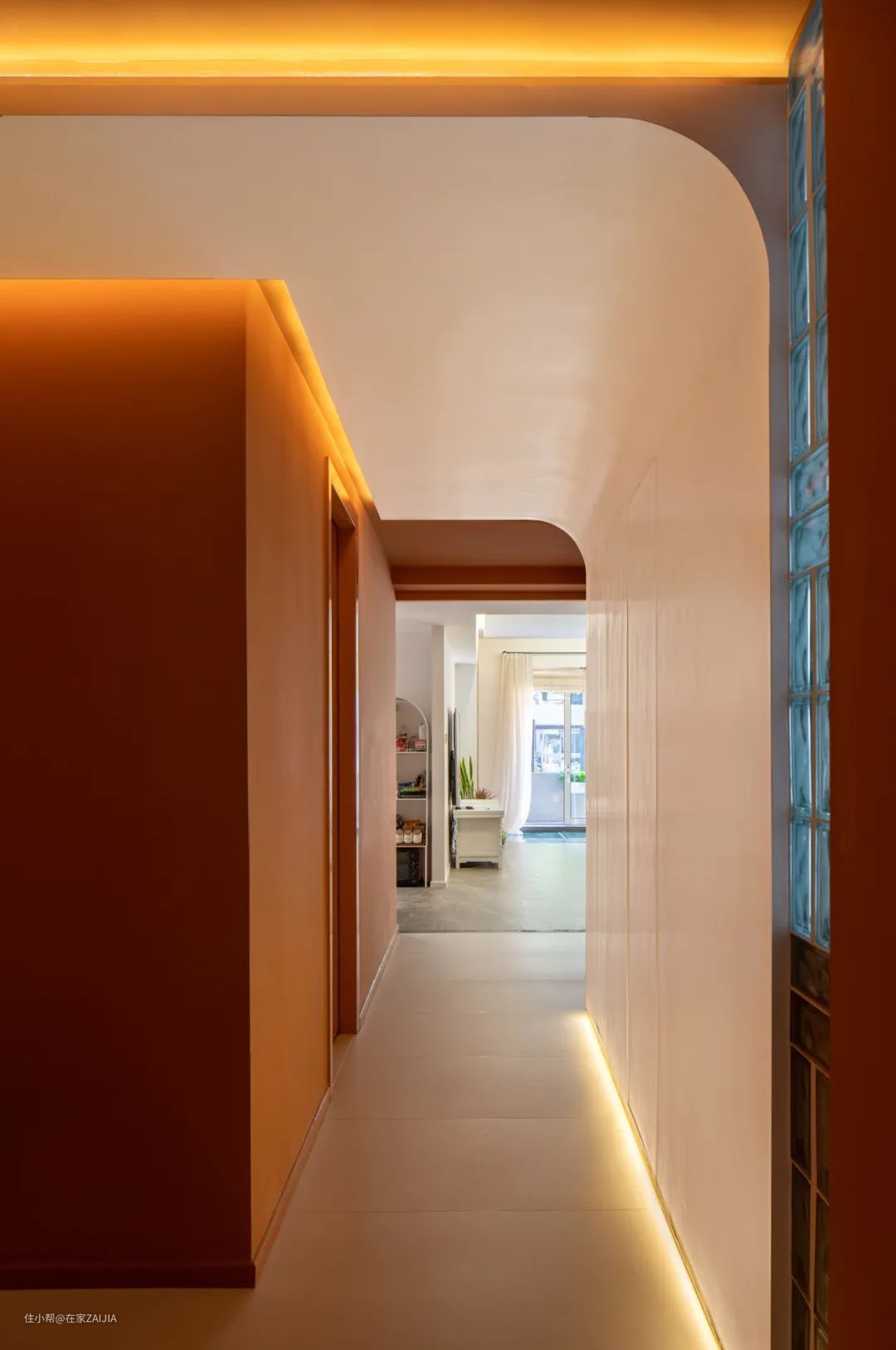 于是便有以下的过道设计,让屋主在或走或停的时候都能感到一种照拂。