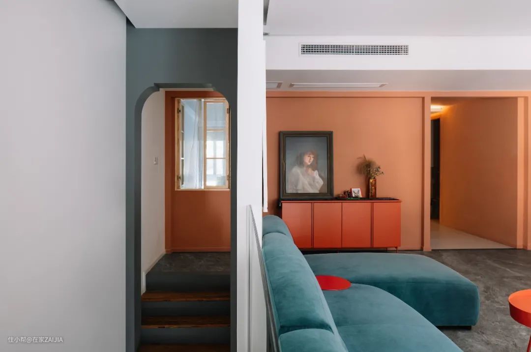 真正到卧室区的部分,用了大面积的砖红色,有一种旭日东升般的温暖。