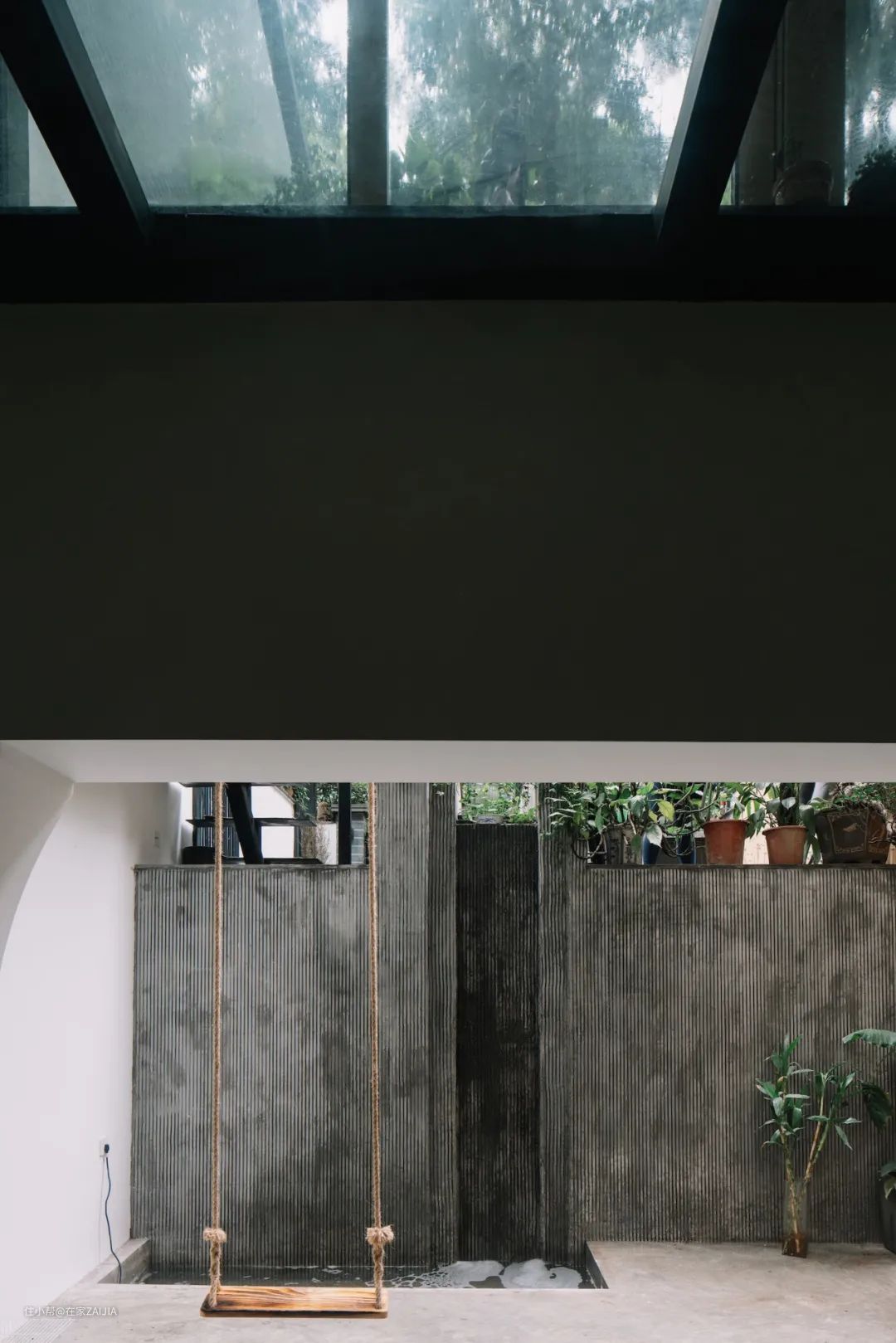 此外,负二层的车库入户之上的楼板还挖了条缝,为地下划开了一道光。
