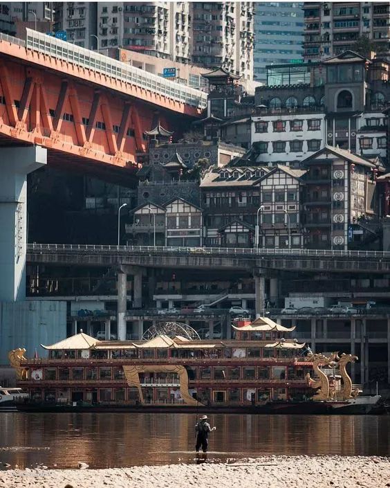 山城重庆因为地势奇特,从不缺乏任性的房子,很可能平街进去的楼层其实是负七楼,甚至还会有轻轨从居民楼里穿行而过。马路上面是房屋,马路下面也是房屋。