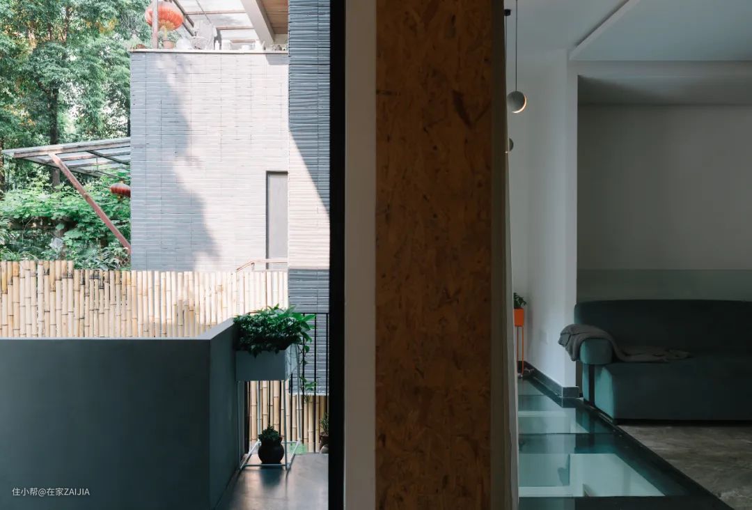 房子的西北面有庭院,与邻居家的围墙之间加了竹栏栅,阳光打在上面能产生反射光,让院子多一点温暖!