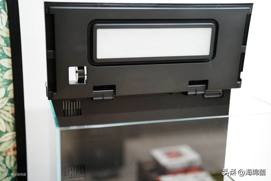 水泵接口与电源线接口旋紧后,卡在后方卡槽即可,就可以做到线材的隐形,一条线搞定且无痕也是这个鱼缸吸引我的关键点之一。