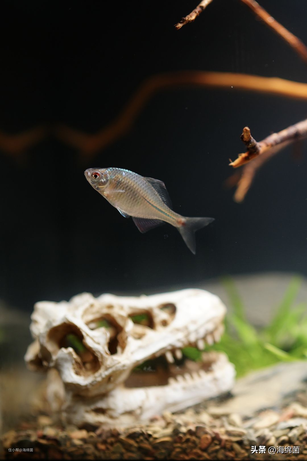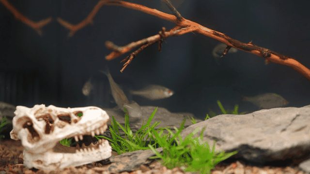 因为个人喜好,我又在网上买了个恐龙头骨的装饰,放在水下增加点气氛,十几块的小东西没想到拟真度还挺高,拿到手感觉是超出预期的。