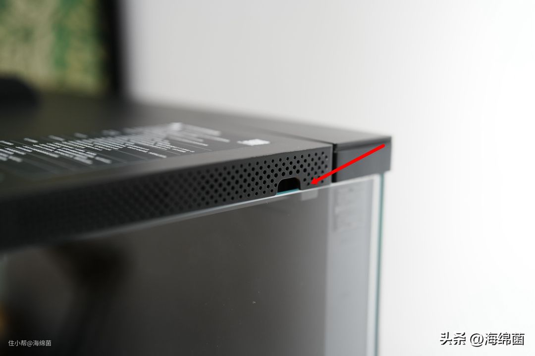 可以看到鱼缸上盖右侧预留了一个线孔,后期有改造需求的话应该能用到,注意孔位只有右侧有,左边是没有的。