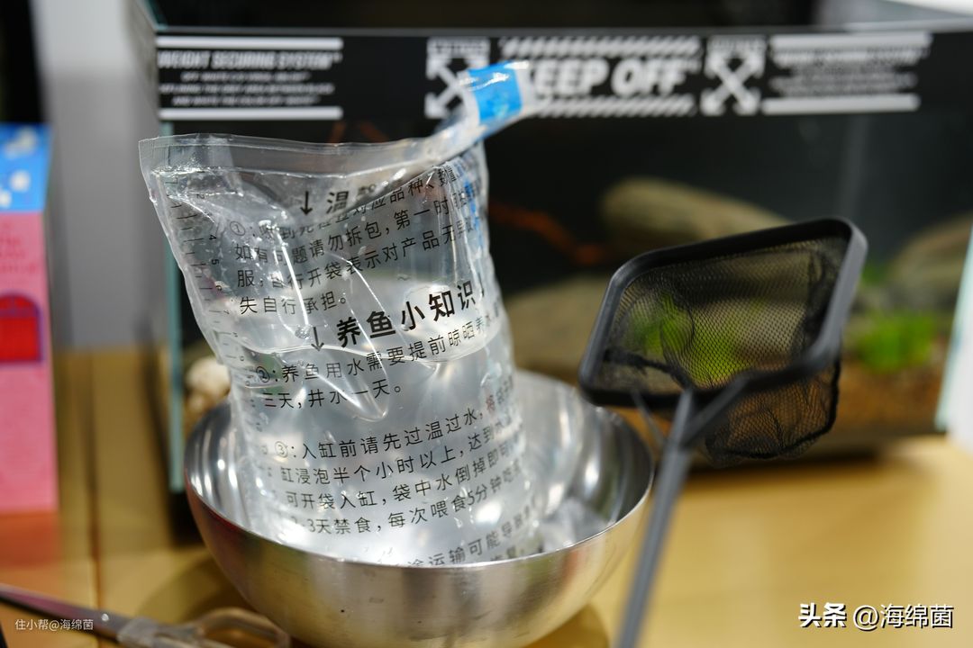 记得先直接连袋子一起放入鱼缸过温,时间半个小时就差不多了。